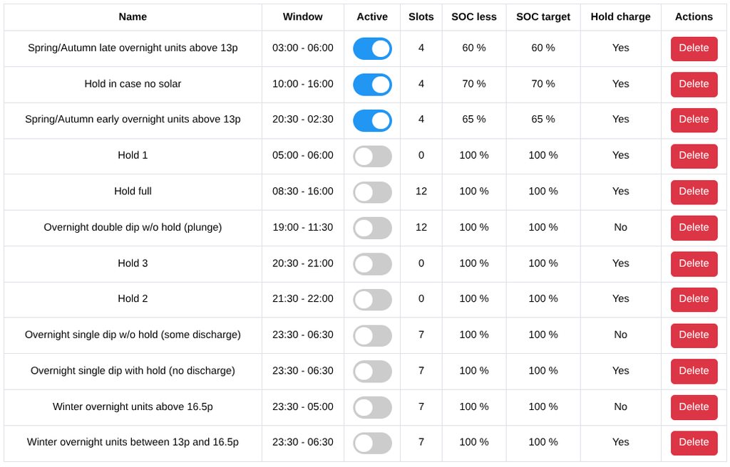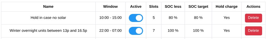 These are my pre-defined charge schedules I switch on and off and make minor adjustments...