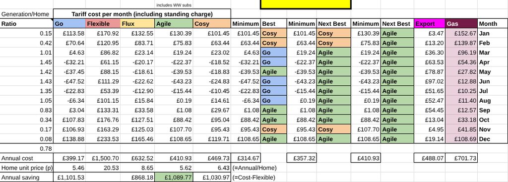 And here's my tariff compare table adjusted for my usage pattern and battery size (which is too small to last 18 hours between charges)...