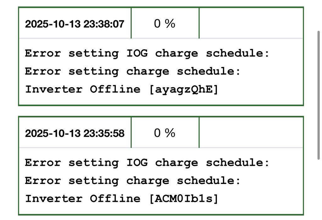 jsheerin I realised today that my batteries hadn’t charged last night. Any ideas ? I started a manual charge tonight but WW seemed to have no problem tonight anyway. URL=https://imgapi.wonderwatt.com/i/t99dI4O.jpeg][/URL]