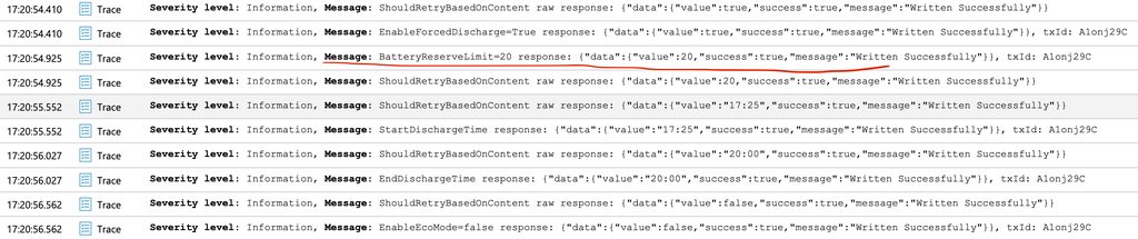 OK, found your details, looks like we set the battery reserve percentage correctly to 20% and it succeeded.