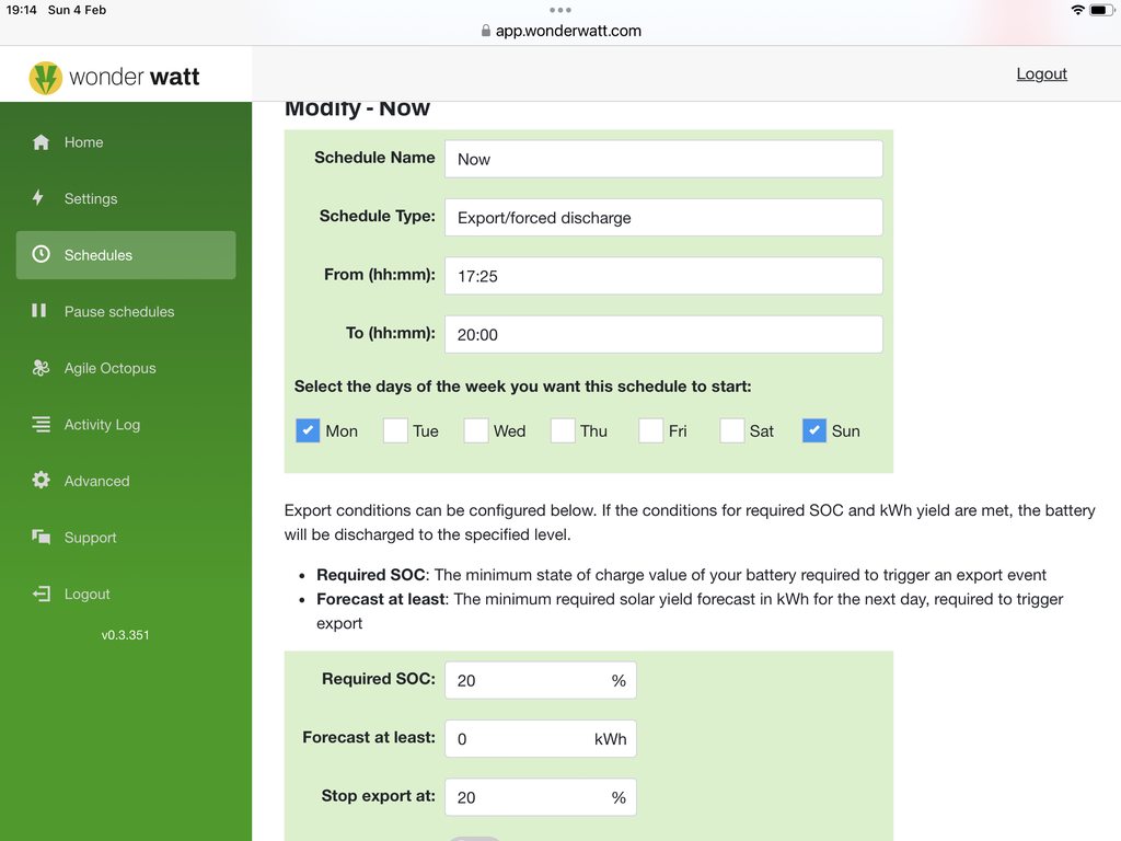 Might still be good to understand from your Giv logs if something else caused it to be overwritten after we set the export/discharge instruction at around 17:21.