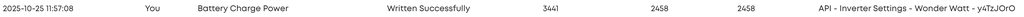 Capt_Rich I'm currently charging my battery during one of the free octopus sessions. I noticed the battery was only charging at 2.4kw so I jumped into the logs and can see WW set it at that rate, despite my WW battery rate being set at 3.4kw in the advanced settings. (WW ID open-departure)