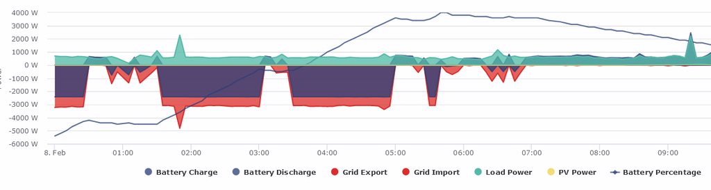 Here is an example. The charge period is 01:00 to 06:30 to 100%. When battery reaches required SOC, it gets paused. Charge period is still active so inverter doesn't start using the battery until the end of the charge period.