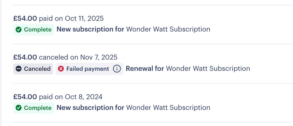 For some reason, most of you have this odd Failed payment and cancelled sub that happened on the 7th of November, today, well, yesterday (Friday).