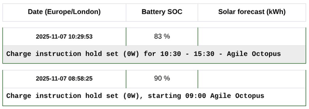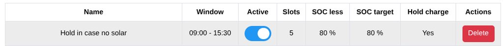If, at the start of the window, the SOC is already above the charge target WW sends a hold command to my inverter.