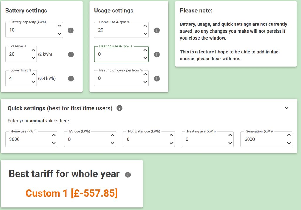 Data entered here. I've assumed you're gas for heating/hot-water...