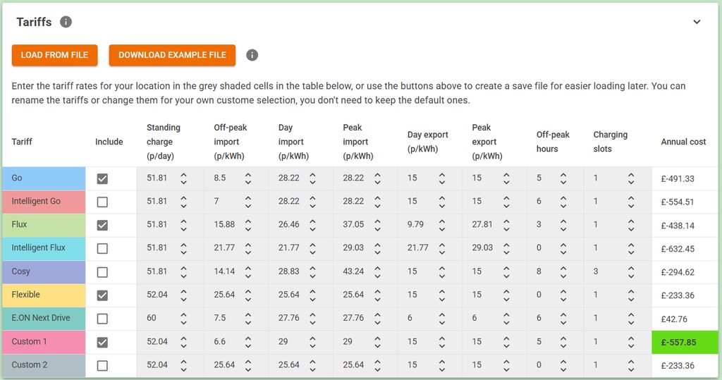 ... added the GE tariff as Custom 1 (rates may be different for your region), and blanked ones you can't have. Technically, you're not eligible for Go but, depends if you have any morals ...
