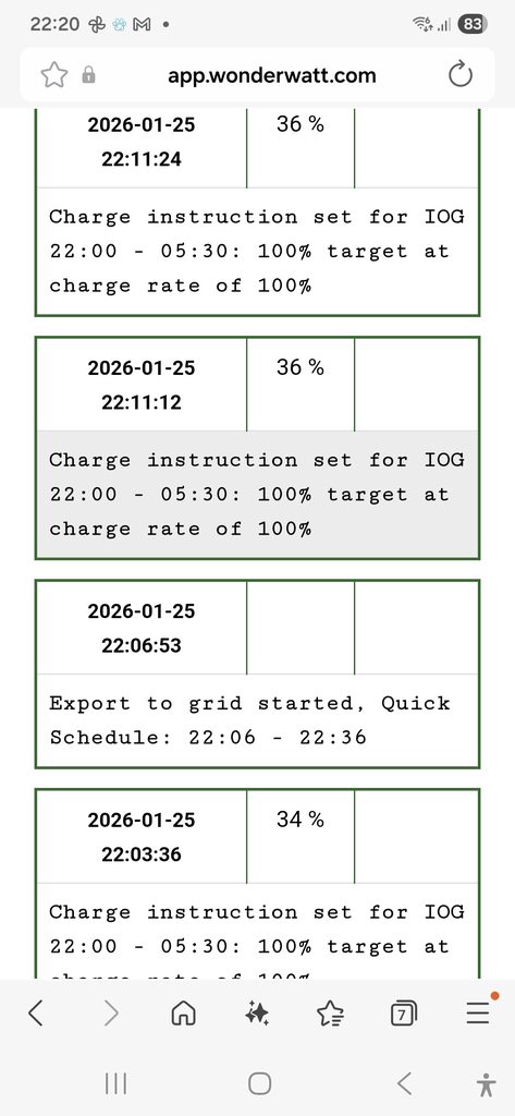 Update today (Mon) car charged okay overnight. I'm wondering if this issue is simply caused by plugging the EV in, receiving Octopus slots for maybe much later in the day but unplugging again before any charging occurs (which is probably not a 'normal' action). Even though Octopus have removed the charging slots, WW still has them registered and proceeds with charging at the allotted time(s)?