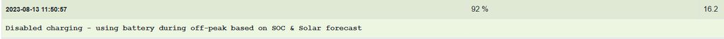 "Disabled charging - using battery during off-peak based on SOC & Solar forecast"