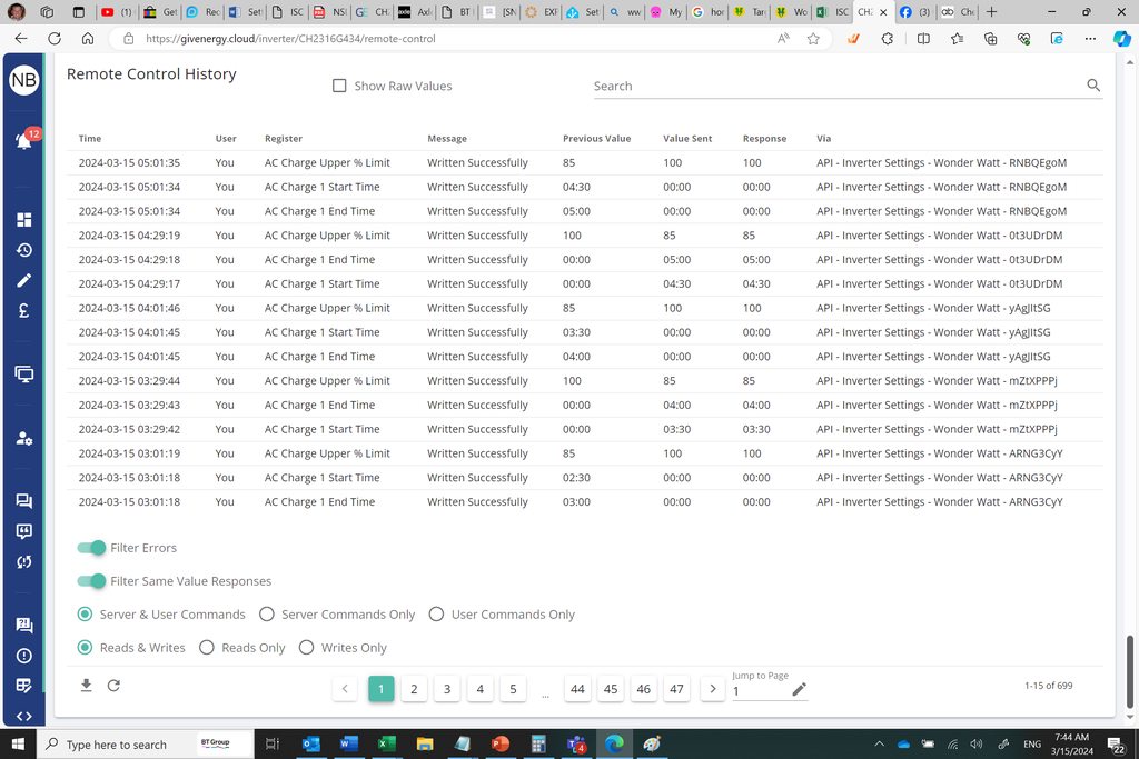 Odd that HA updated inverter settings yet they are not shown in the GE log which is why I didn't see any obvious issue.