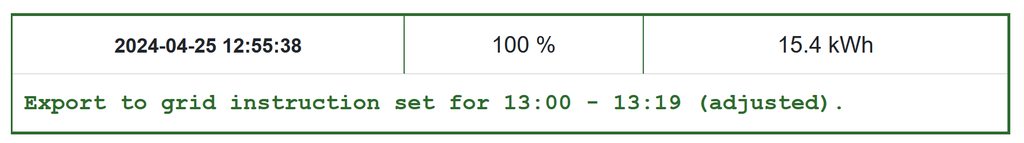 The rule that triggered this says that if the battery is at 98% or above, force export between 1pm and 3pm down to 94%.