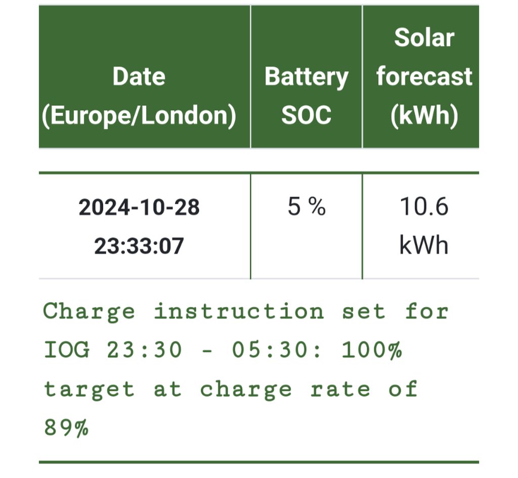 I still haven't figured out what happens to Kraken at 05:56 though. I've seen more FB posts with schedules changing at the same point, but not sufficient to identify any correlation yet. There's the usual do-gooders saying that's just how IOG works, and I'm fine with Octopus adjusting schedules on the fly, but there must be some significance to that exact time and it's bugging me.