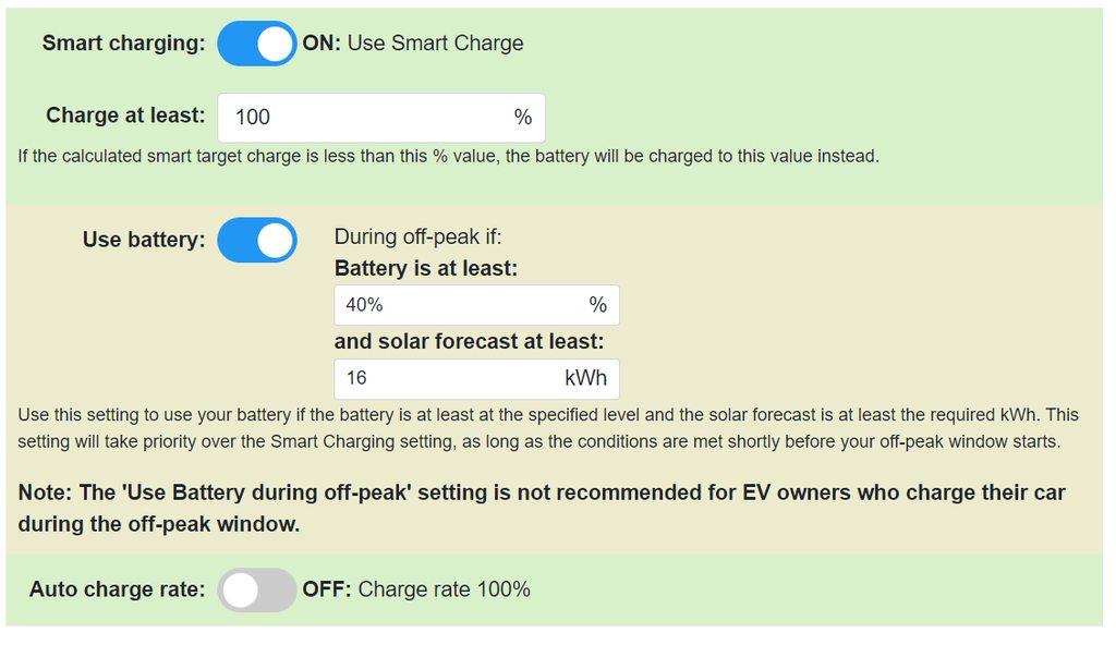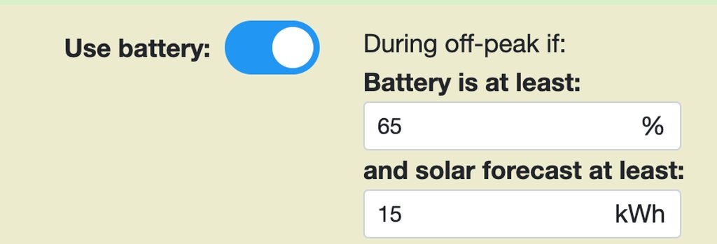 Solar Forecast - when the solar forecast for the next daylight period (e.g. a charge schedule 1am to 5am would be same day) set the charge to activate if forecast below set level.