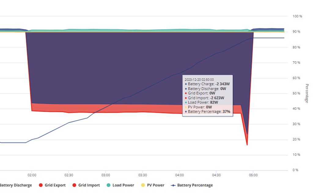 As for you @SilverArt - and it only reaching 98%, this might also be down to the charge being throttled further close to 100% SOC by your inverter itself. Hopefully it's close enough. We can see how we go and might need to set an additional few % extra charge rate for head room if it keeps falling short consistently.