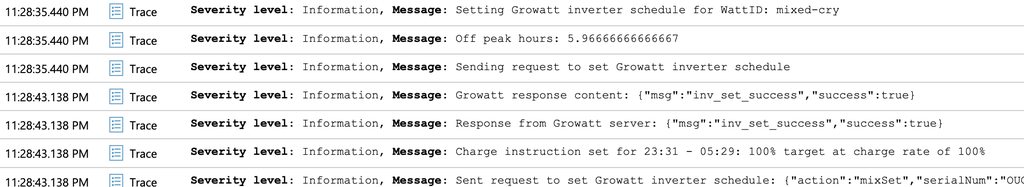 admin SILENCEuk Nothing to do with WW I’m afraid. See diagnostics and response from Growatt API: Looks like it all went through. Nothing to suggest there was an error.
