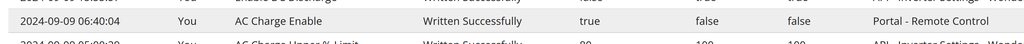 Personally, I would prefer it if WW read the status of the AC Charge Enable field, and returned it back to whatever it was set to prior to the charging session. Failing that, can WW send a 'AC Charge Enable - False' command by default, seeing as you routinely send a 'AC Charge Enable - True' command prior to the charging session anyway?