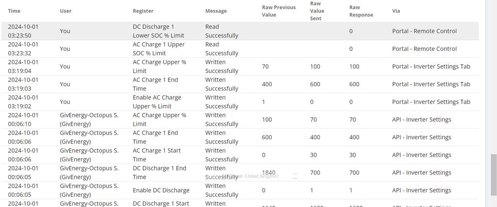 admin ghoutman Looks like you have a GivEnergy/Octopus integration active, as you can tell by the User field. We add ‘Wonder Watt’ to the ‘via’ field, so this wasn’t us.