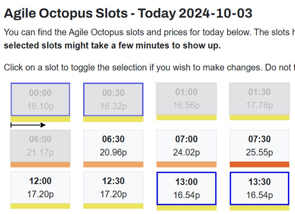 I have four auto-selected slots on today's charging schedule, two of which were Midnight and half past.