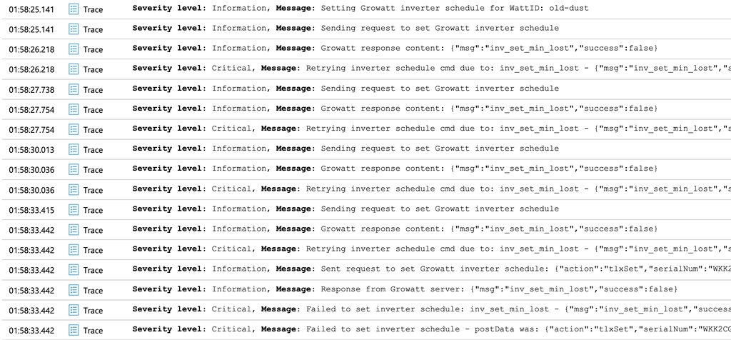 Robbie Looks like we're getting an error response back from Growatt, see below.