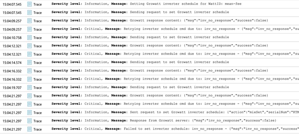 teejay24660 We can see a most recent failed one on 30th October, and we got this response back from the Growatt API: