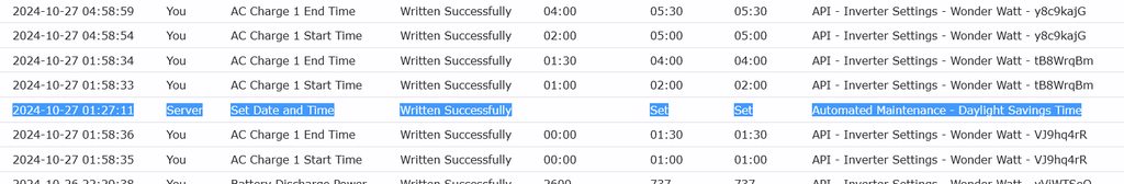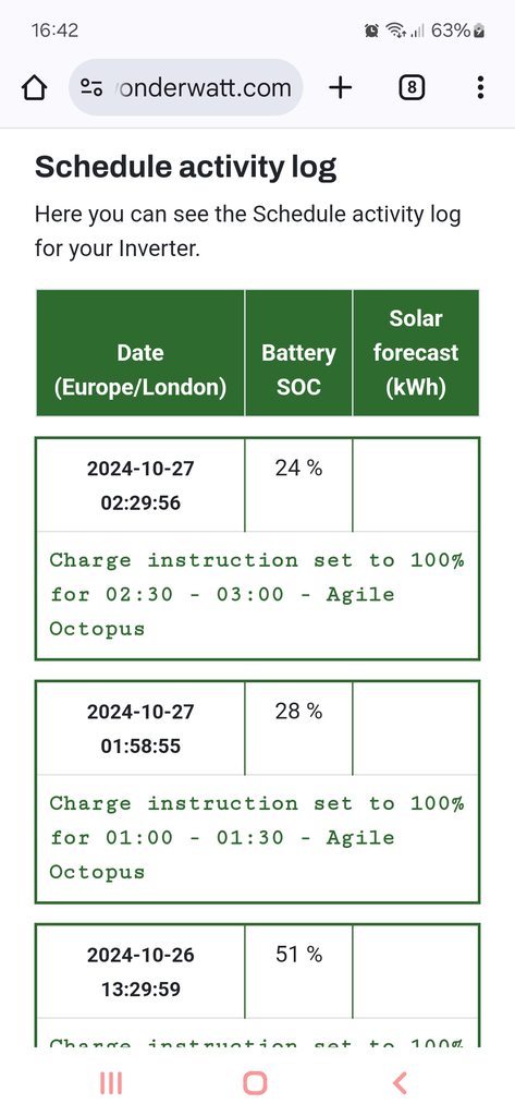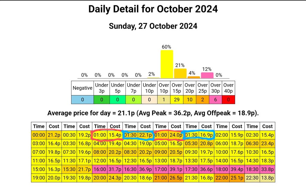 For safety, I am selecting 02:00 and 02:30 only to carry the battery thru the night. It's due to be sunny all day tomorrow, so I will run dishwasher and washing machine during glorious sunny hours.