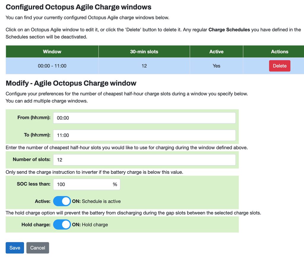 I’m not sure how typical a user I am, but I usually want to charge my battery using the cheapest slots overnight, and then occasionally set 1 or 2 slots manually in the afternoon when there’s been no solar or I’m concerned the battery won’t get us past 19:00 / to the next cheap overnight slot. So overnight, I would generally like to hold the charge (so EV can complete charge etc) and then, when the prices start going up / household demand increases, I want to run off the battery.