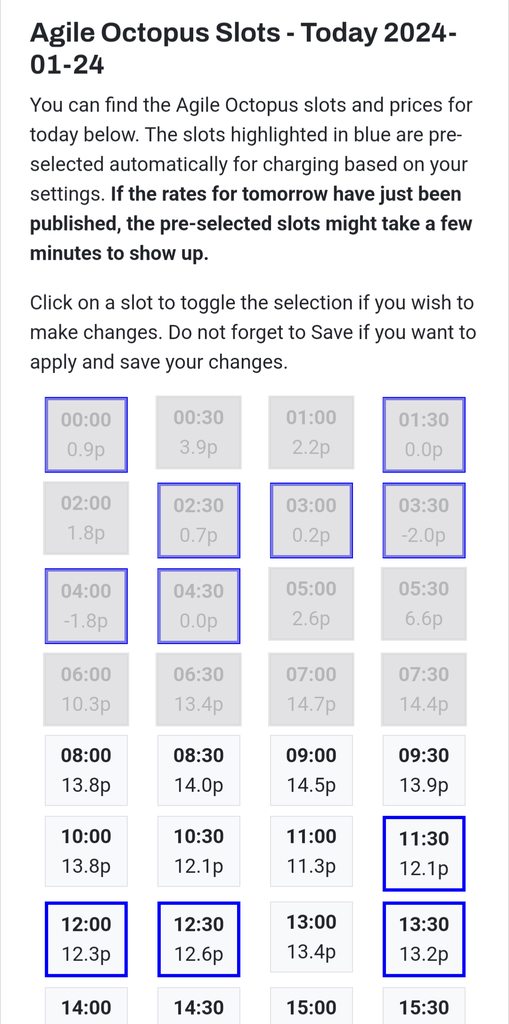 Adding smart plug integration would also be great, to allow the control of any electrical appliance based on 1/2hr pricing (currently doing this manually, which is more faff).