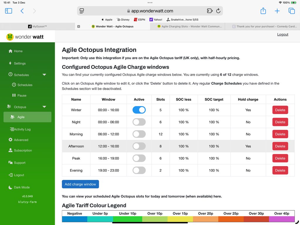 Your 'Night' window, out of the 12 half-hour slots, you want WW to choose 6 of them if your SoC is anything less than 100% and you want it to charge to 100% using 6 of the cheapest half hour slots and hold the battery in-between times.