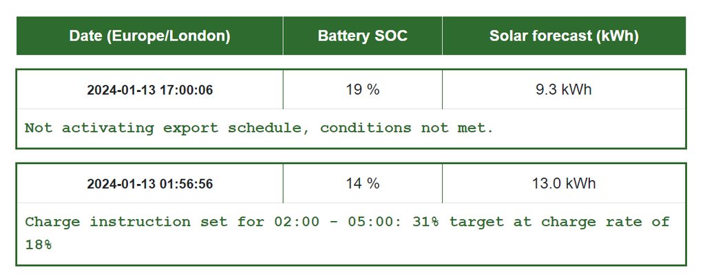 I have a daily smart timed charge in the early morning followed by a conditional timed discharge from 17:05 to 19:00 (peak selling time rate).