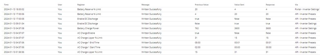 Bottom line: when for whatever reason the battery ends up being lower than the target starting SOC for a timed discharge, WW should not touch the battery % limit which it reset each time at the end of a time discharge back to the original value. It did that in my case at 18:58:56 the previous day at the end of the timed discharge window (correctly):