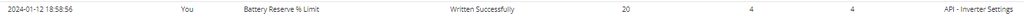 At 17:00:06 the battery reserve % limit was changed from 4% to 20%