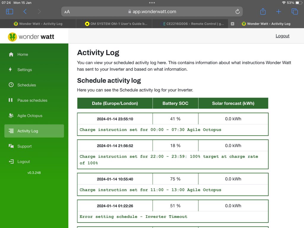 I set a standard timed schedule last night to charge from 10pm to Midnight as I wasn’t sure if I could set multiple agile sessions that spanned 2 days.