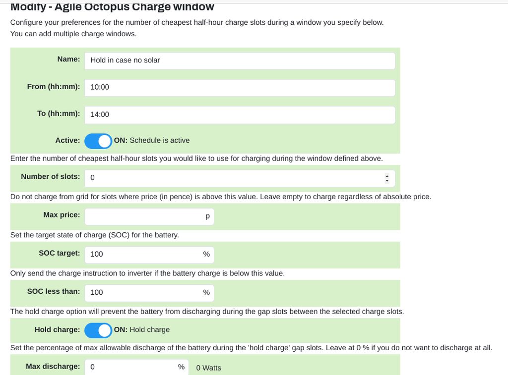 I was wondering if it were possible to do that also when I'm not charging the battery during an off-peak time. Currently I have 3 slots of off-peak energy (on Octopus Cosy), and I don't use the evening one for charging. But I also would like my appliances to pull directly from the grid during that time.