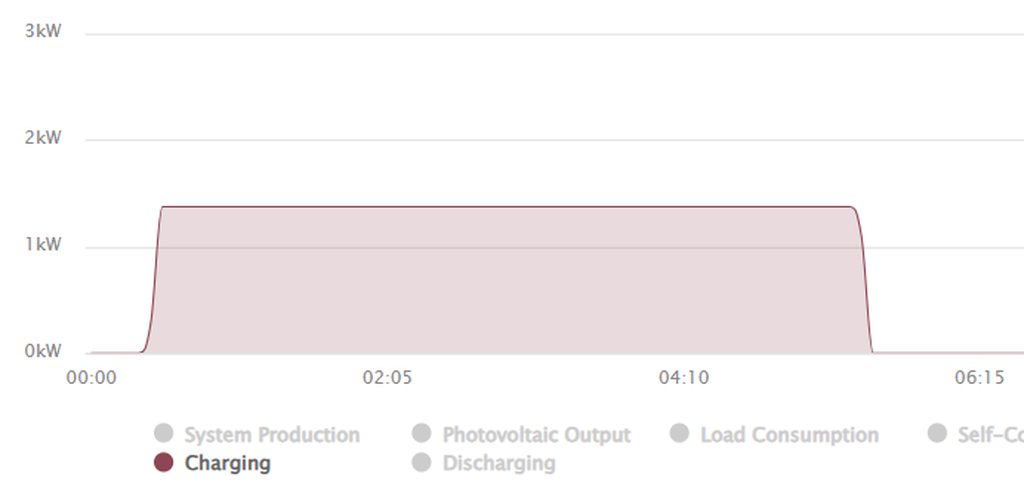 However, it got nowhere close to fully charging my batteries. As below just charged at a constant lower rate (the batteries can charge at 3kWh). I thought that the auto charge rate would be adaptive and increase charge to make sure it reached the set SoC target by the end of the charging schedule?