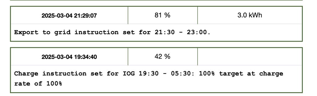 michaelm Whilst users with IOG and solar storage can take advantage of our IOG functionality to top up their solar battery, our IOG integration is especially useful for users who have their system wired in a such a way that the house does see the car load.