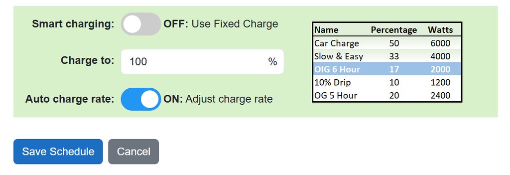 The system described above would if implemented solve the long standing issue of the missing Inverter Discharge Rate, providing accurate WW calculated adjusted end times and allow user defined Charge / Discharge Rates to be applied to any Charge or Discharge Schedule.