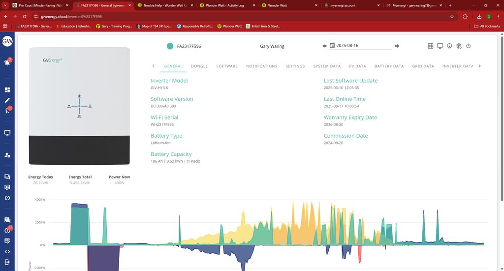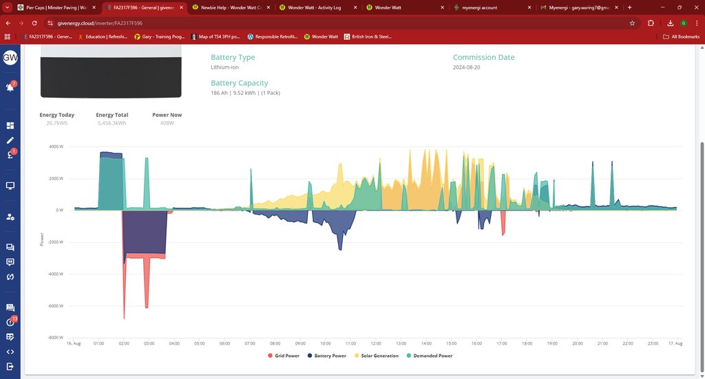 Check you have all the settings on this page correct, the daily use at the bottom of the page is important to you, as you'll be using this to help minimise grid import.