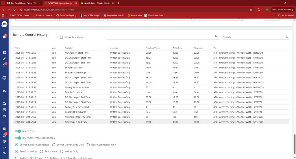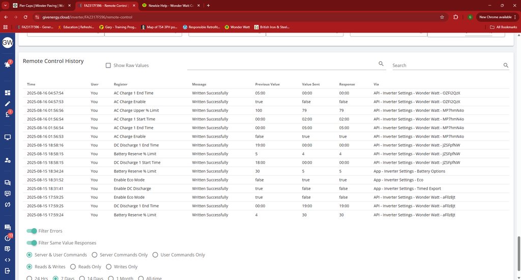 You want your batteries to charge from solar as much as you, rather than grid, and any xs will get used by the house or exported. Make sure in your Giv settings you have Eco ON.